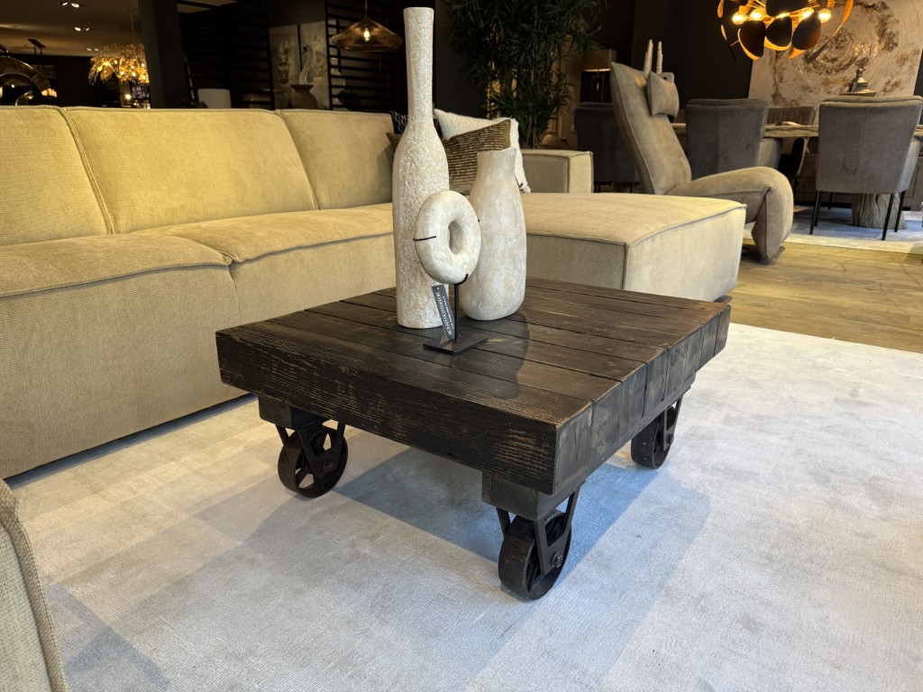 Salontafel Old Pine Zwart Wielen 80X70CM