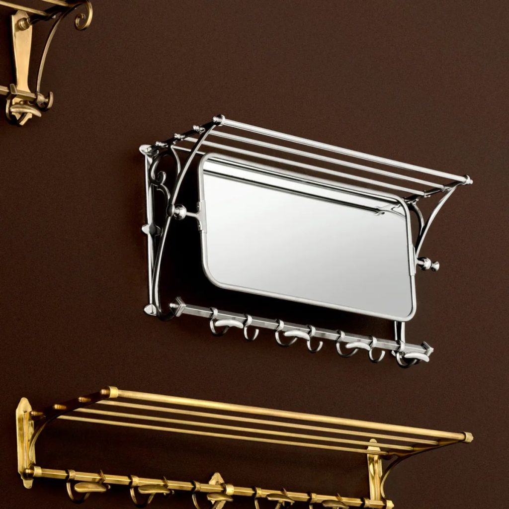 De Varadero kapstok doet denken aan nostalgische bagagerekken. Deze wandkapstok in vintage-stijl is voorzien van een verstelbare spiegel, 4 haken voor het ophangen van overjassen en jassen en een bovenste plank voor handschoenen, hoeden en dergelijke.