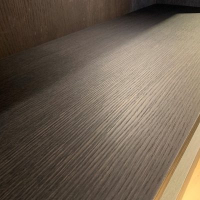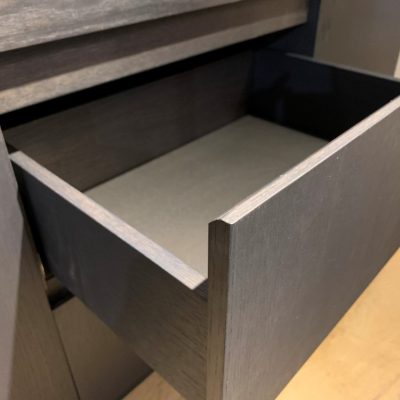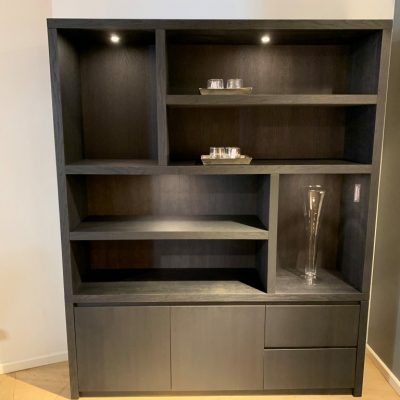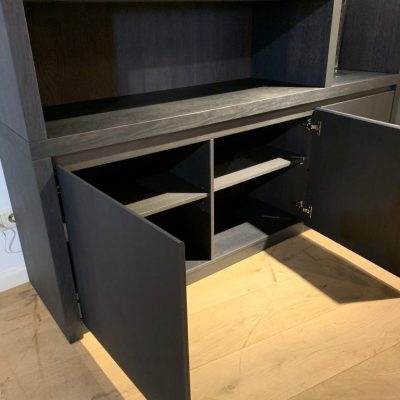 De kast is afgewerkt met zwart geverfd eiken fineer.