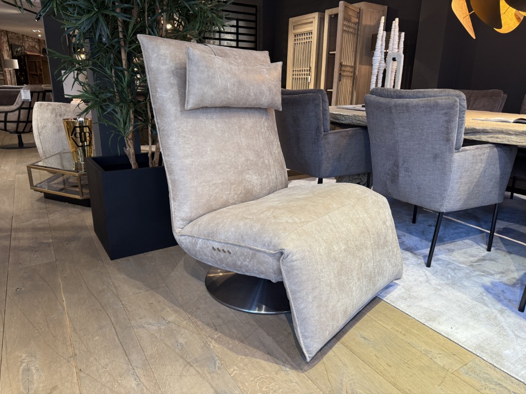Luxe fauteuil Indi met elektrisch verstelbare voetsteun en rugleuning die te bedienen zijn met touchknoppen.