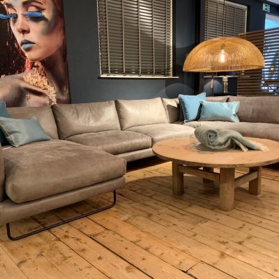 Bank Jackson. Getoond model: Longchair arm links, 3-zits en open eiland rechts.