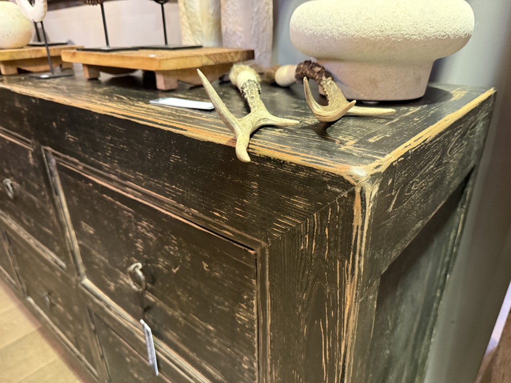 Zwart ladeblok ‘Modena’ met 8 lades, gemaakt van old pine hout.