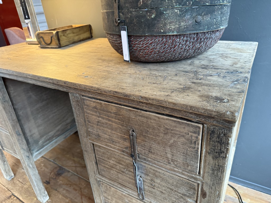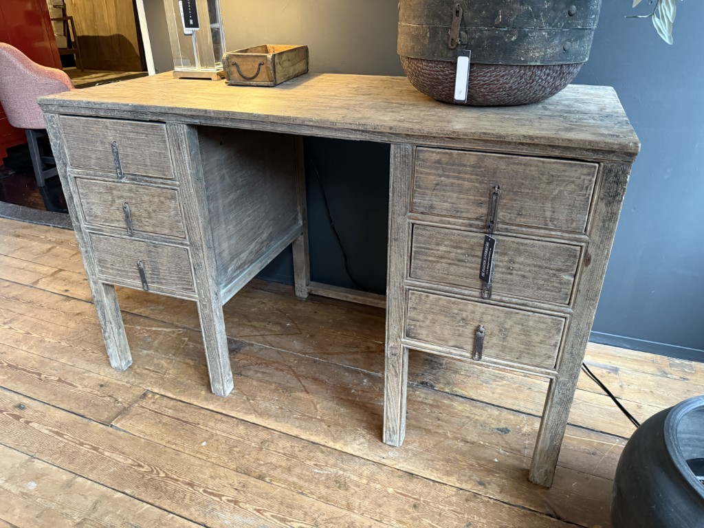 Antiek Chinees bureau met 6 lades, gemaakt van old pine hout.