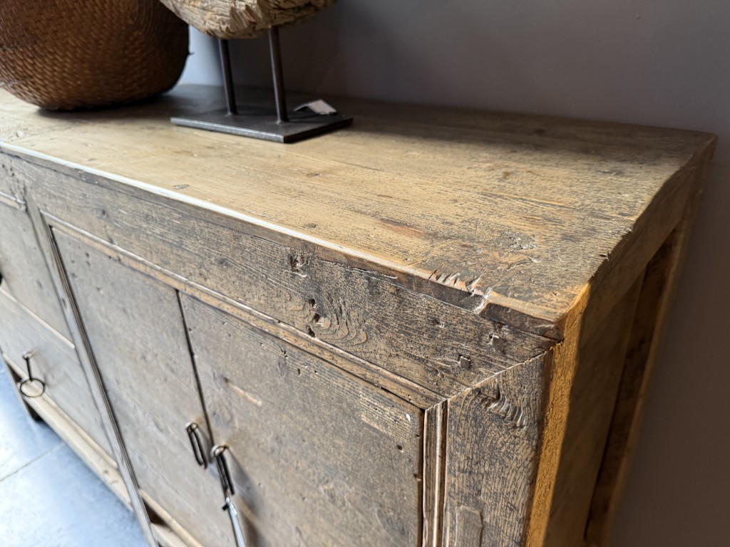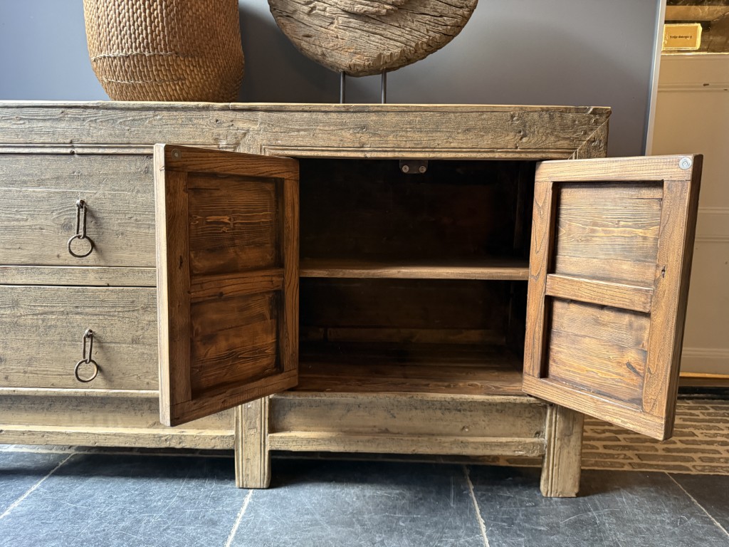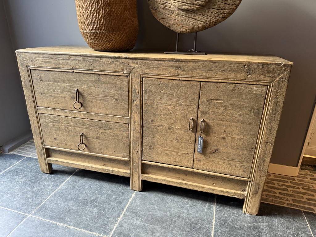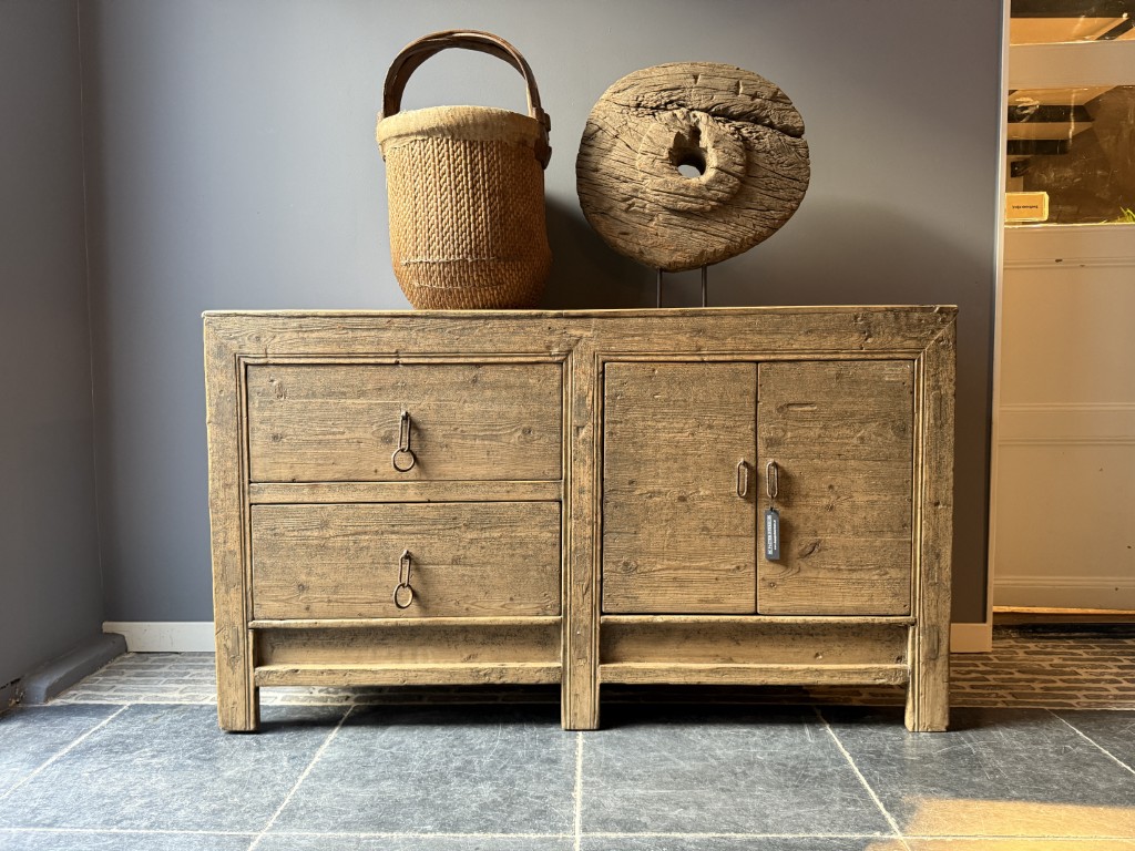 Antiek Chinees met 2 lades en 2 deuren, gemaakt van old pine hout.