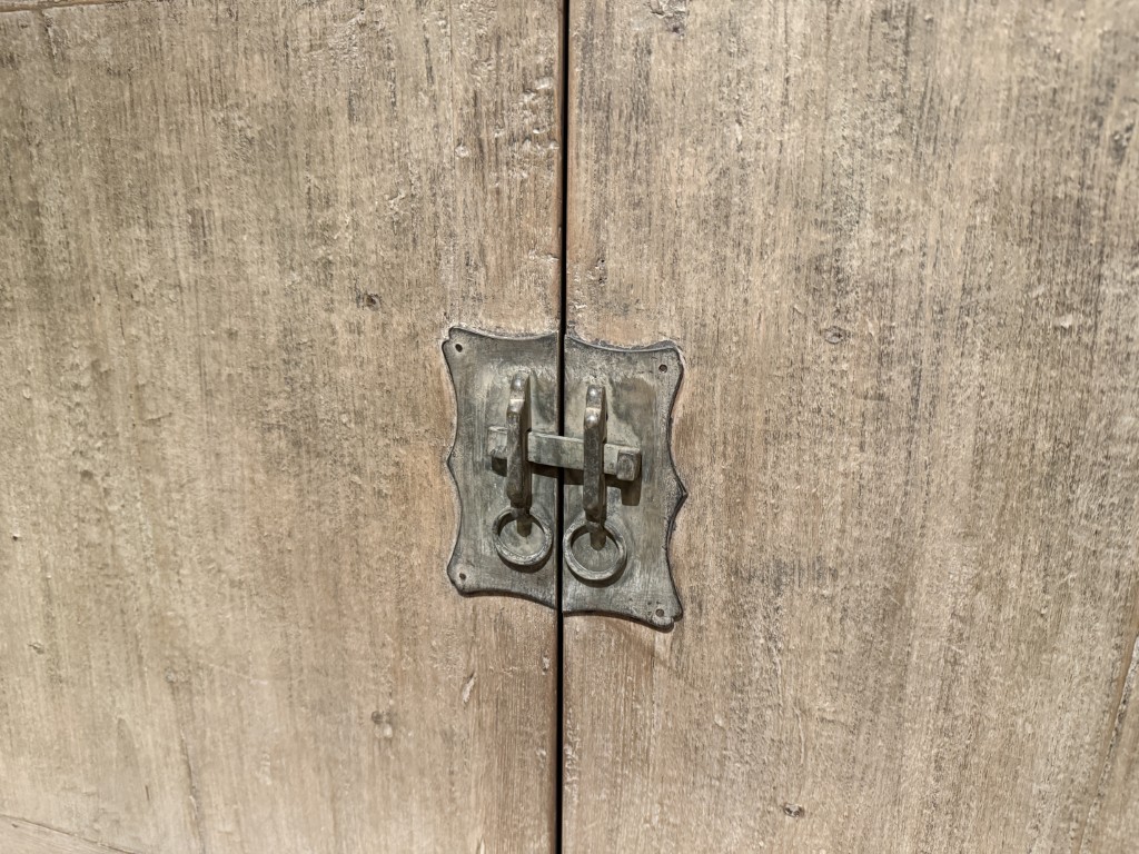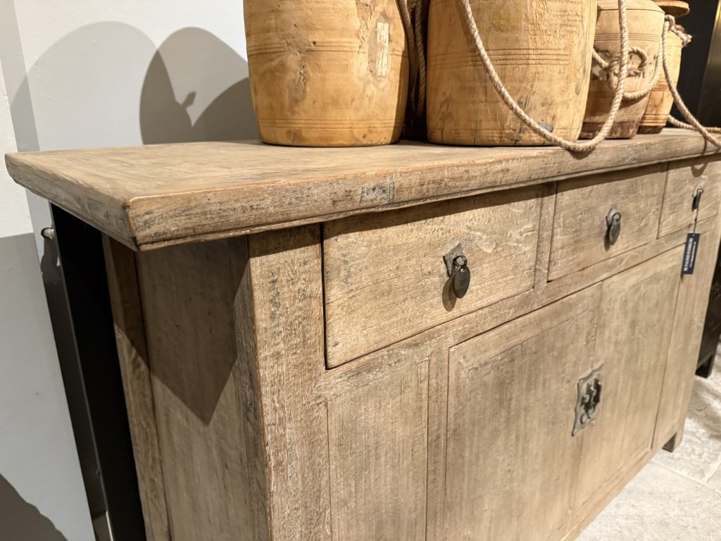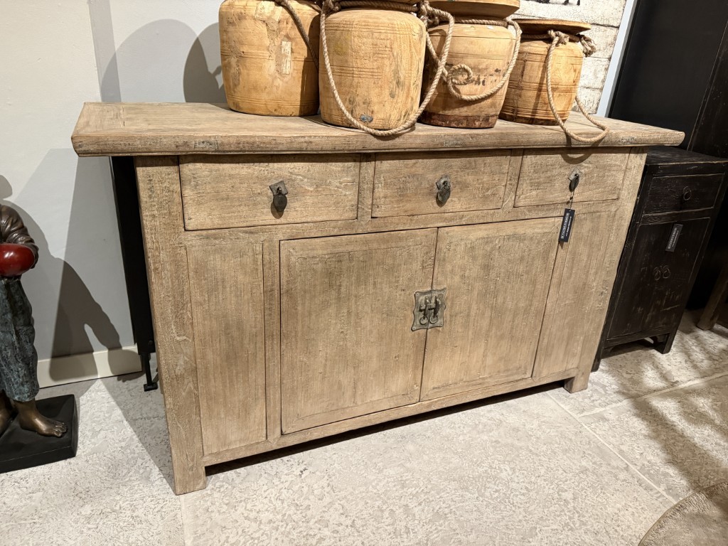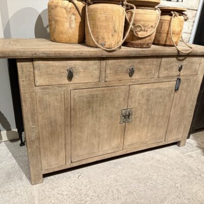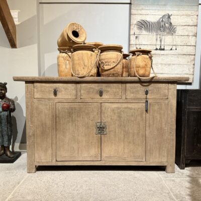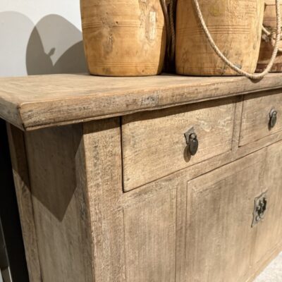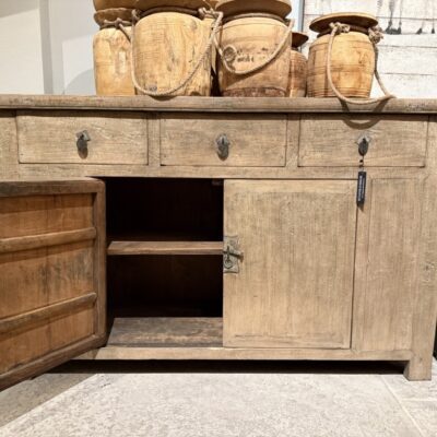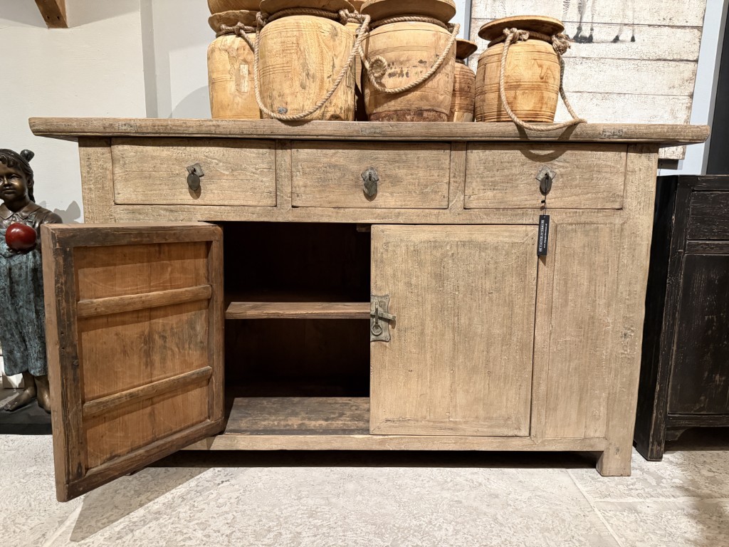 Antiek Chinees dressoir met 2 deuren en 3 lades, gemaakt van old pine hout.