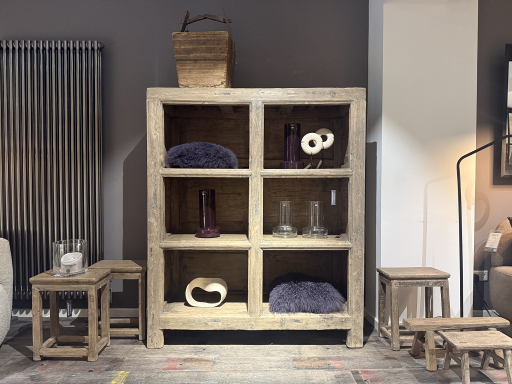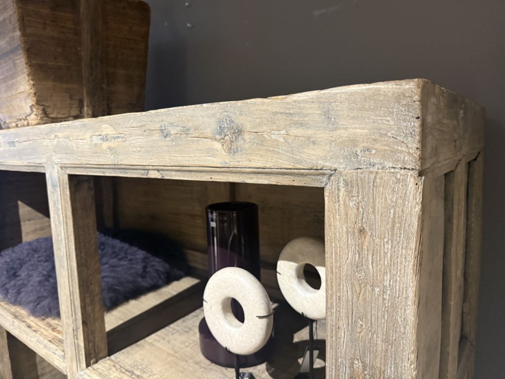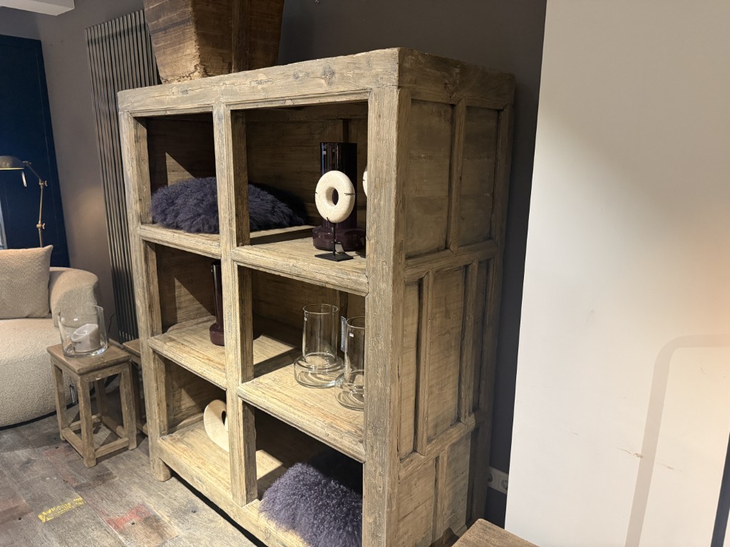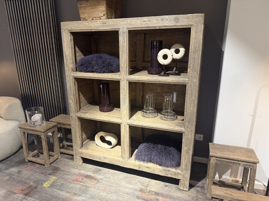 Antiek Chinese, open kast, gemaakt van olmenhout.