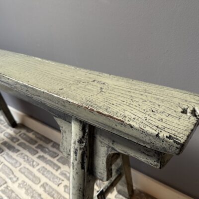 Licht grijs gelakt bankje, gemaakt van old pine hout.