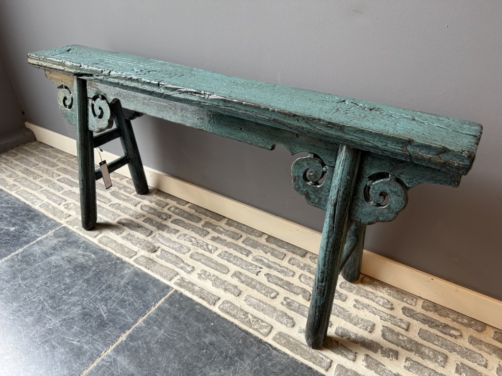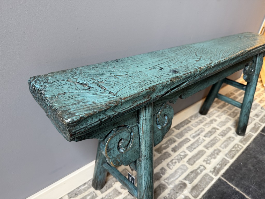 Blauw Gelakt Bankje Wang 117CM aantal