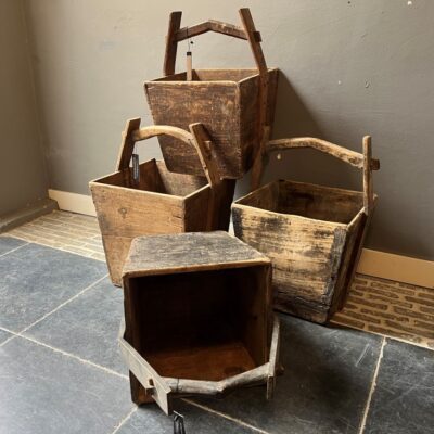 Verschillende Chinese, houten rijstbakken.