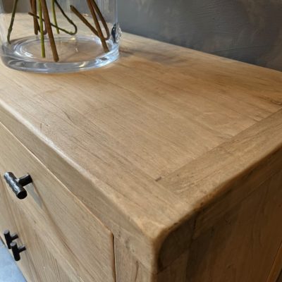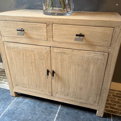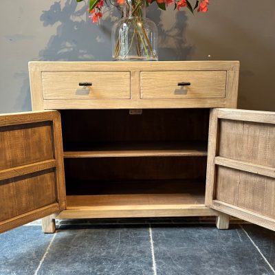 Het dressoir ‘Cosenza S’ is een dressoir met 2 deuren en 2 lades, gemaakt van old pine hout.