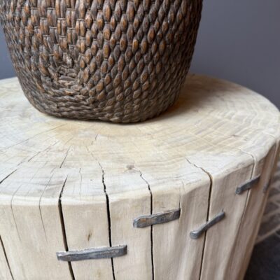 Landelijke bijzettafel, gemaakt van een olmenhouten boomstam.