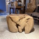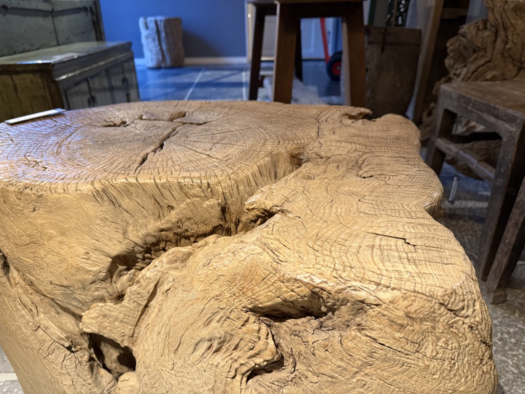 Landelijke boomstamtafel, gemaakt van olmenhout.