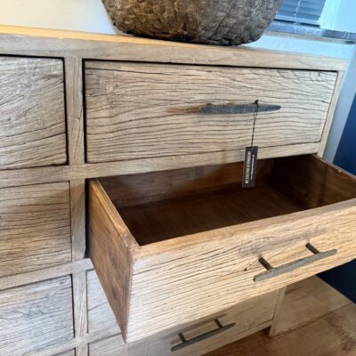 Landelijk ladeblok ‘Cairo’ met 8 lades, gemaakt van elmwood.