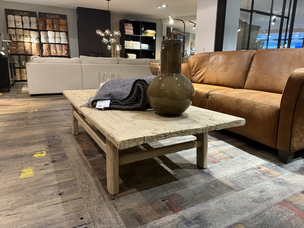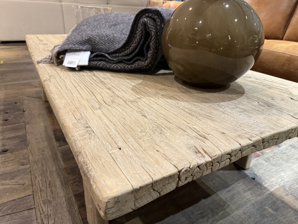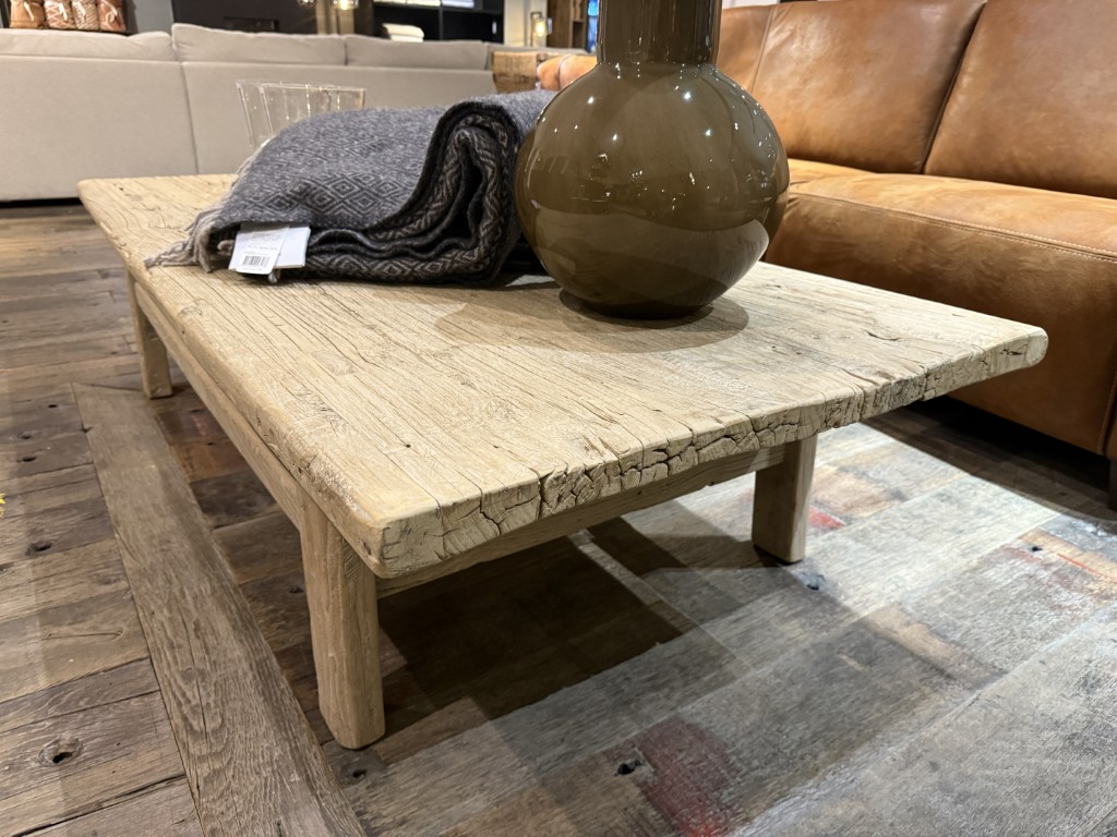 Landelijke salontafel, gemaakt van oud olmenhout.