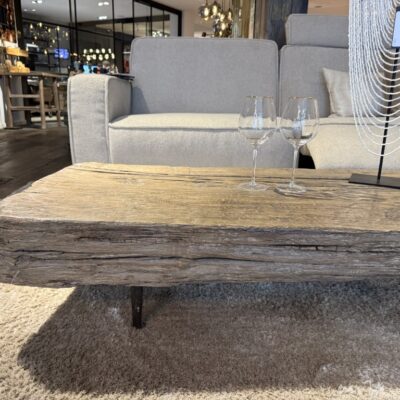 Landelijke salontafel met 4 metalen puntpoten, gemaakt van elmwood.