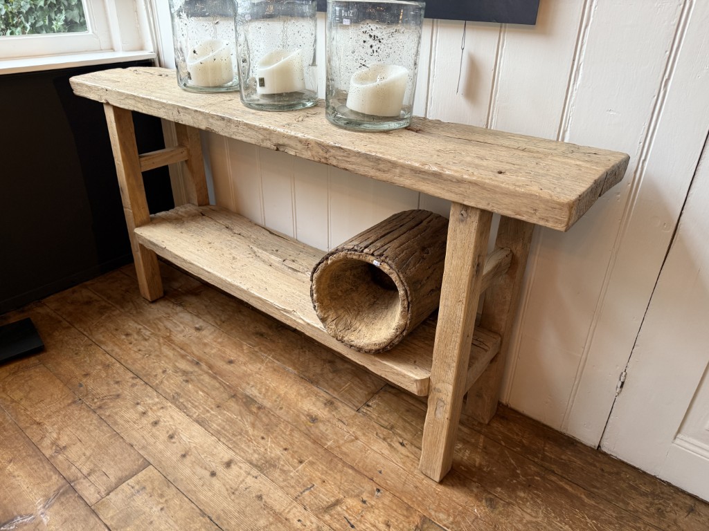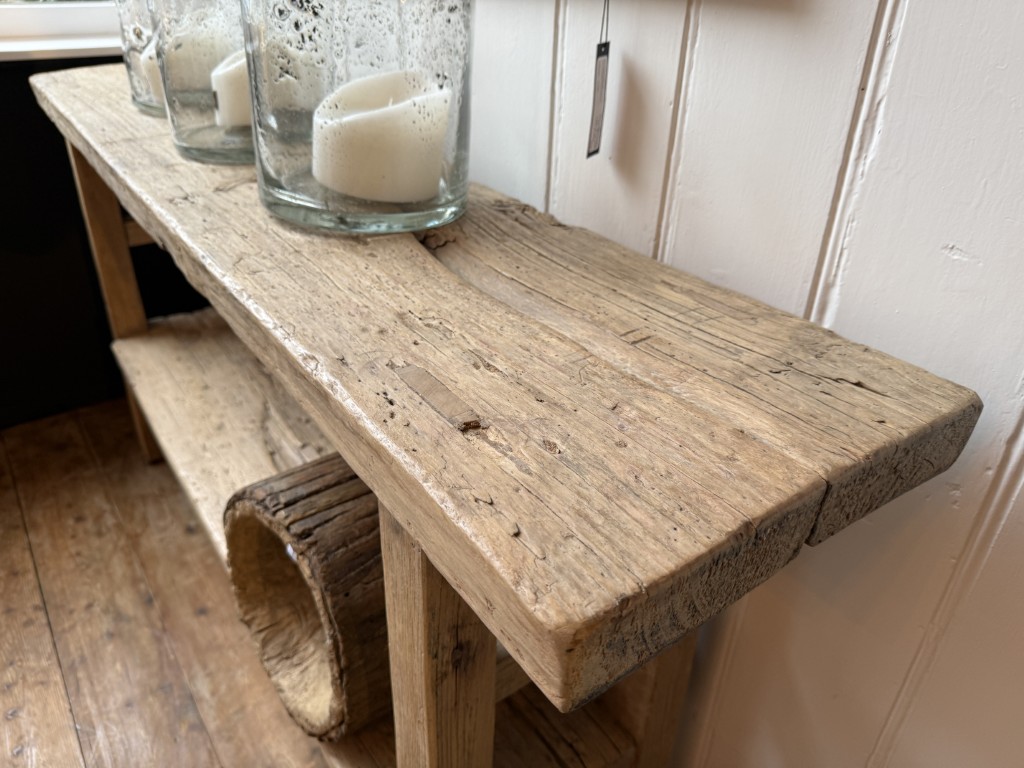 Wandtafel met onderplank, gemaakt van olmenhout.