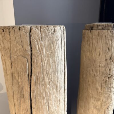 Ronde zuil, gemaakt van olmenhout en een metalen statief.