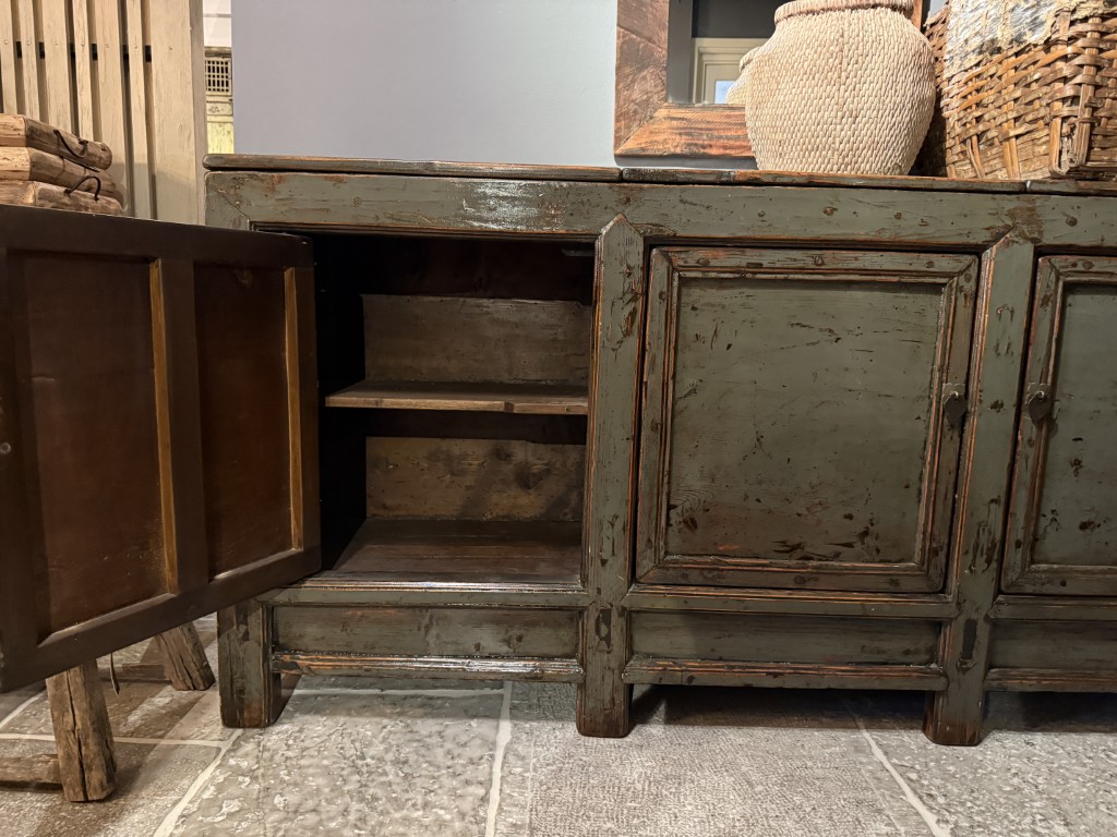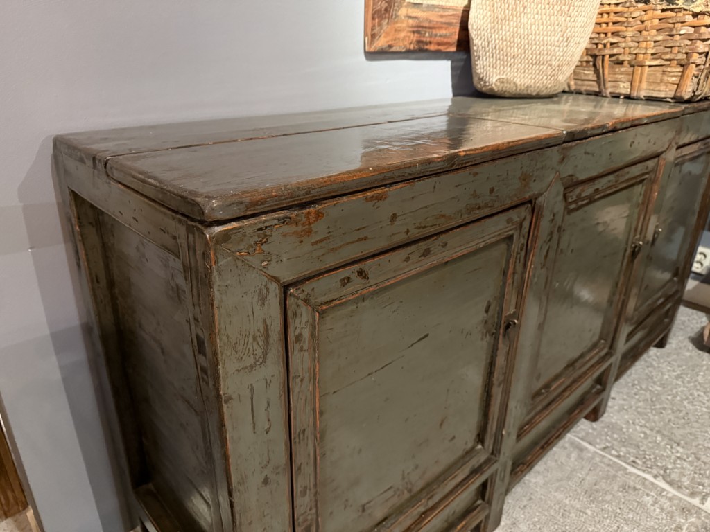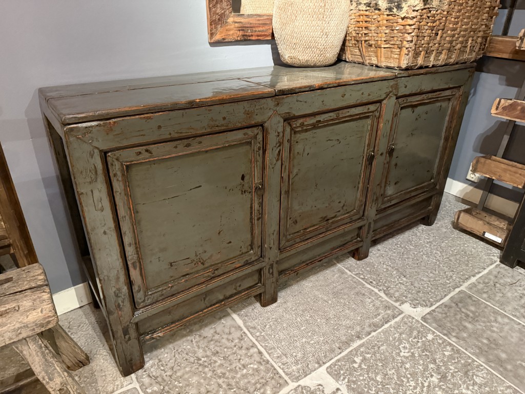 Dressoir met drie deuren, gelakt, uitgevoerd in groen.