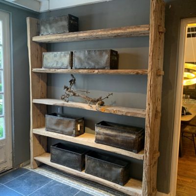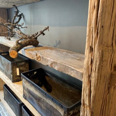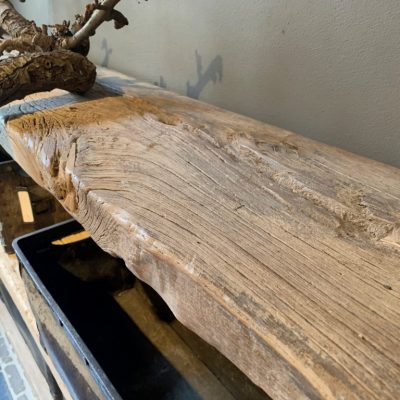 Landelijk rek, gemaakt van grove elmwood planken. Ook in andere afmetingen verkijgbaar.