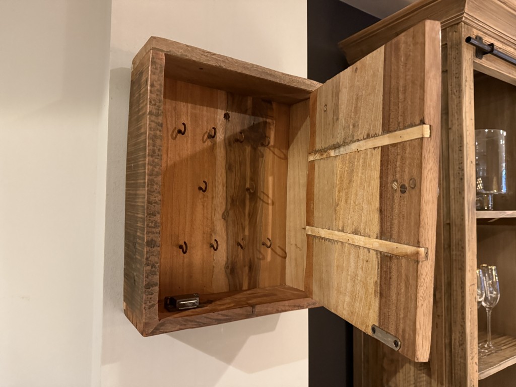 Sleutelkastje voor aan de wand, gemaakt van hardhout.