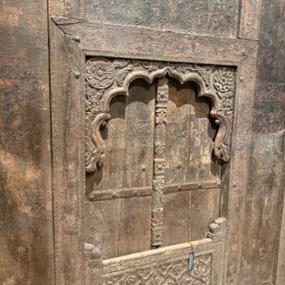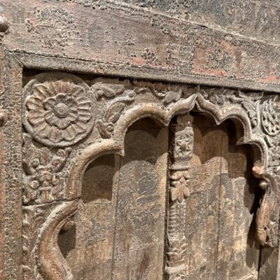 Antieke, Indiase poort met houtsnijwerk.