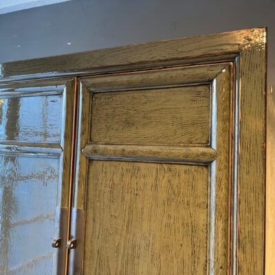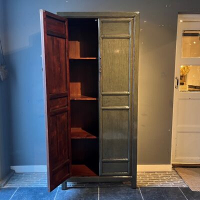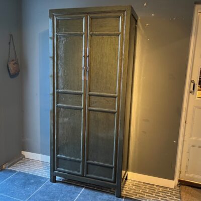 Donker groen gelakte kast ‘Montreal S’ met 2 deuren, gemaakt van old pine hout. Ook verkrijgbaar met 4 deuren (180 cm breed).