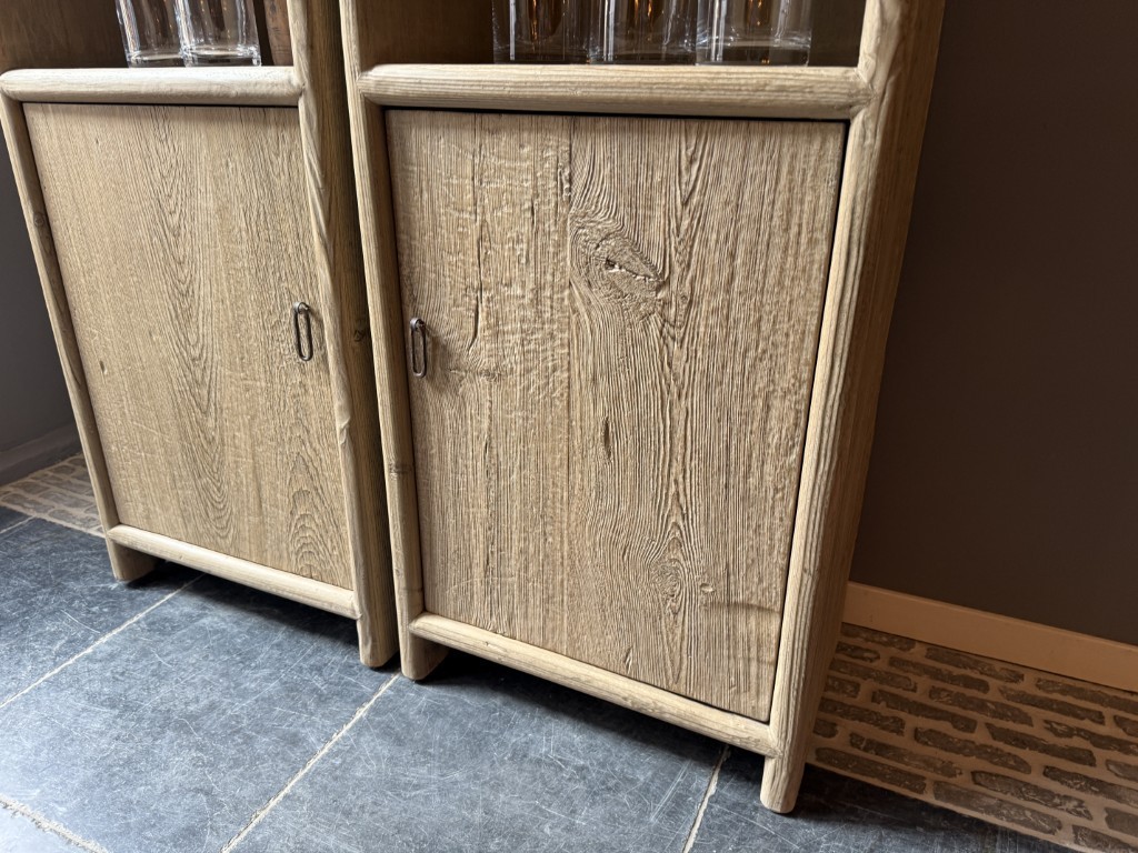 Kast ‘Sarajevo’ met een deurtje en een open bovenkast met 3 vakken, gemaakt van old pine hout.