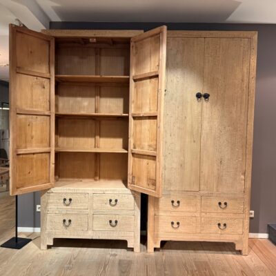 Landelijke kast ‘Torino’ met 4 lades en 2 deuren, gemaakt van old pine hout.