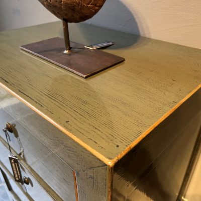 Ladekastje ‘Odessa’ in het donker groen gelakt. Ook in andere kleuren verkrijgbaar.