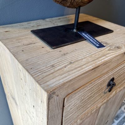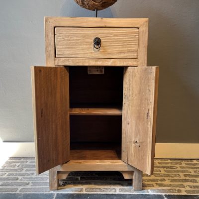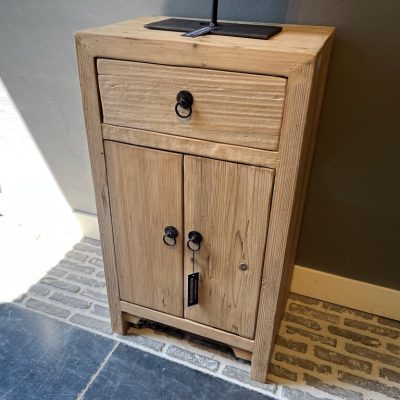 Nachtkastje ‘Cordoba’ met 1 lade en 2 deurtjes, gemaakt van old pine hout. Ook verkrijgbaar in het zwart.