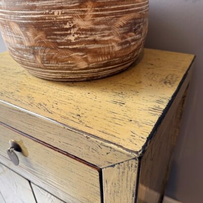 Taupe gelakt nachtkastje ‘Puglia’, gemaakt van old pine hout.