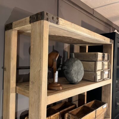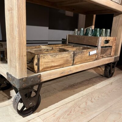 Landelijk rek op wielen, gemaakt van old pine hout. Ook verkrijgbaar met een breedte van 188 centimeter.