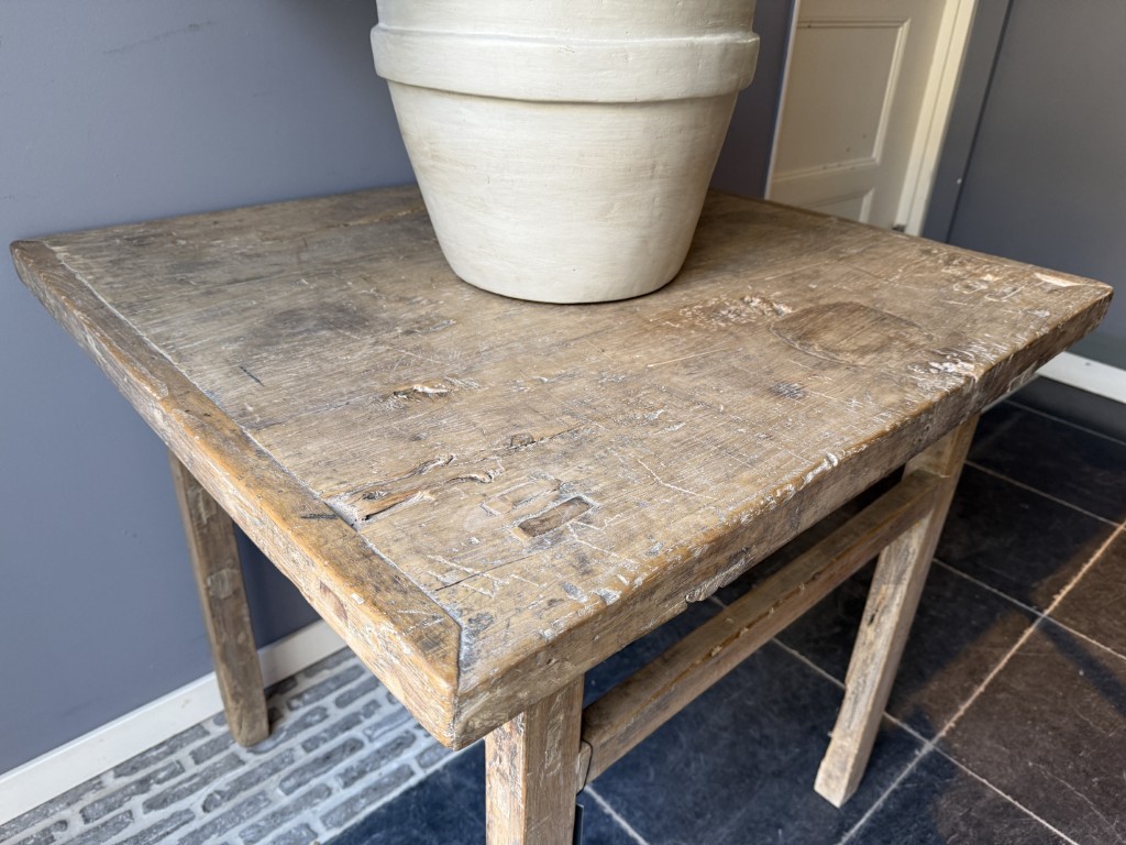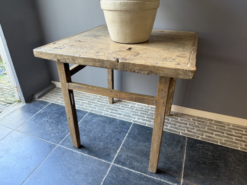 Landelijke, vierkante tafel, gemaakt van old pine hout.