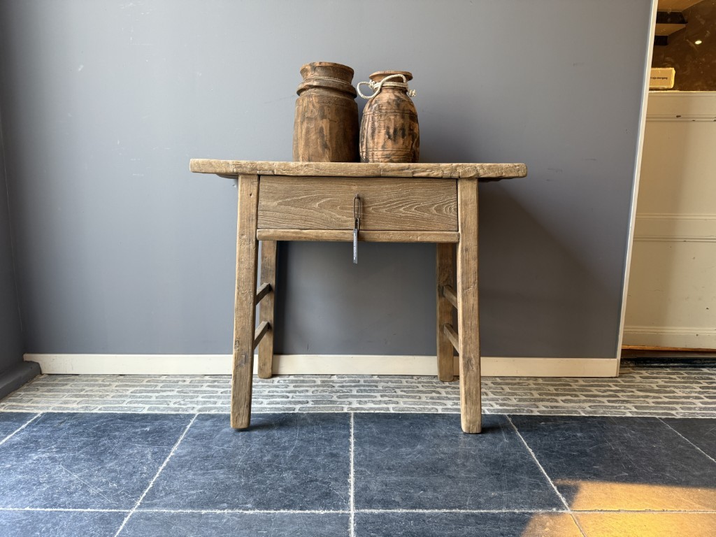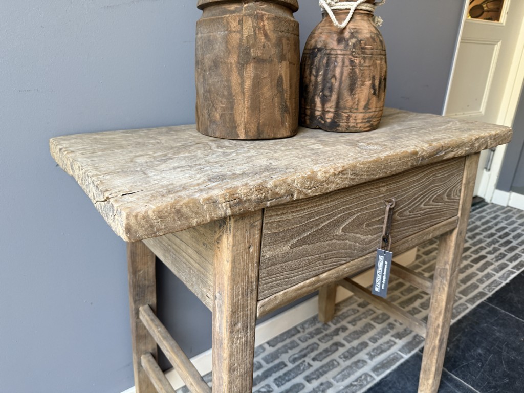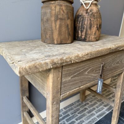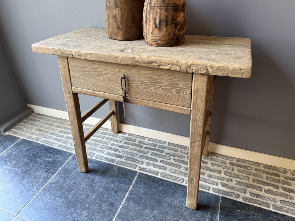 Landelijke wandtafel met 1 lade, gemaakt van old pine hout.