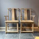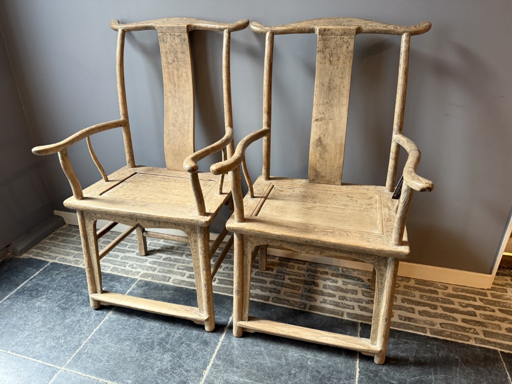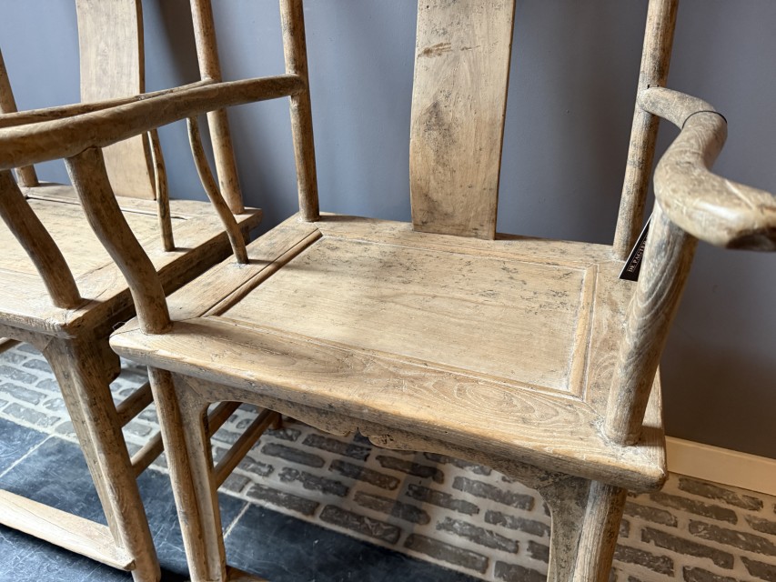 Set van twee antiek Chinese stoelen, gemaakt van old pine hout. De prijs is voor een set van twee.