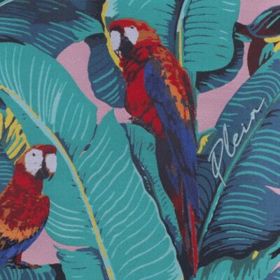 De coole jaren 70-sfeer van het Parrot-kussen in zijdemix en gemaakt in Italië, met zijn verzadigde juweeltinten en handgeschreven handtekening voelt als een uitnodiging om het exotische buitenleven naar binnen te halen.