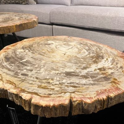 Salontafel ‘De Soto’ van het merk Eichholtz. De salontafels zijn gemaakt van versteend hout en zijn verkrijgbaar in verschillende hoogtes (36 cm, 43 cm en 50 cm).