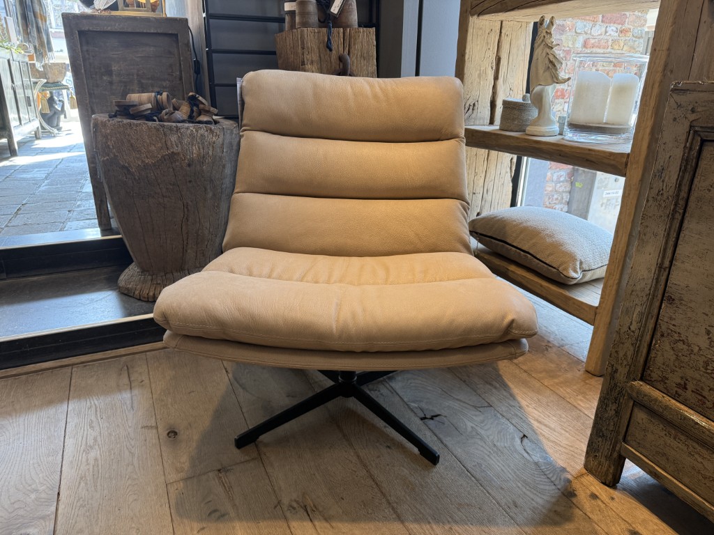 Een draaifauteuil zonder armleuning uitgevoerd in leer: Kenia – Taupe (5).