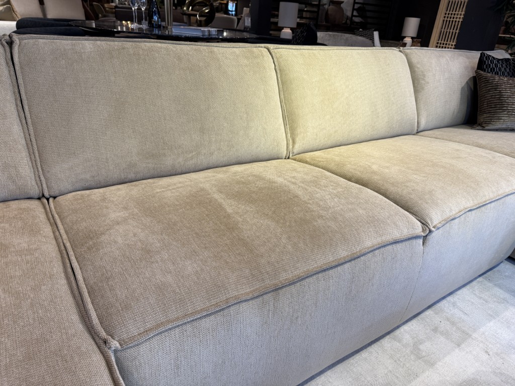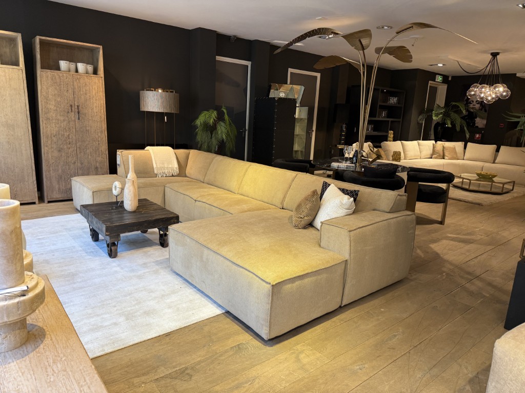Getoond model: Longchair links, 2,5-zits zonder arm en divan rechts.