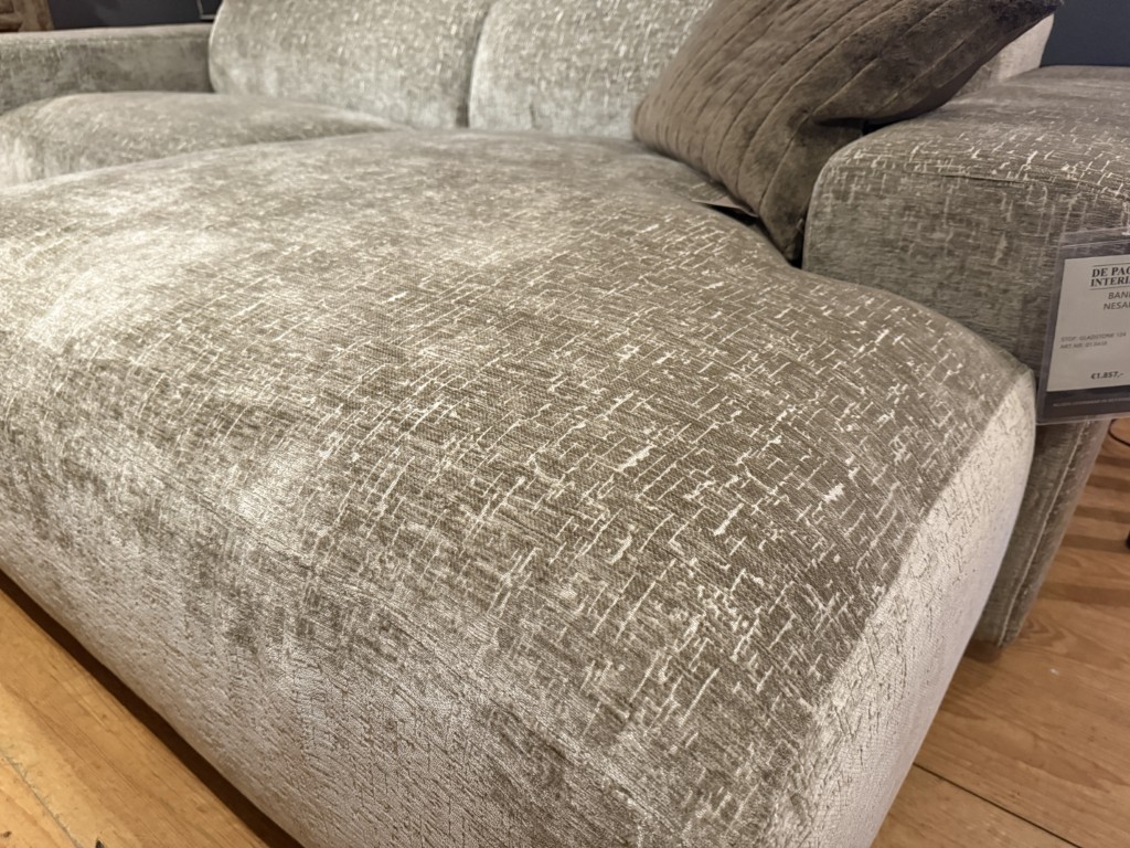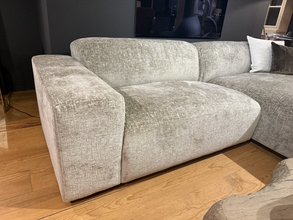 Let op: enkel showroommodel nog beschikbaar. Deze bank is niet meer in andere opstellingen of stoffen te bestellen.