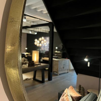 Ronde spiegel ‘Cuba’ met een aluminium lijst. Ook verkrijgbaar met een diameter van 70 cm.
