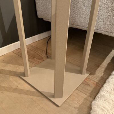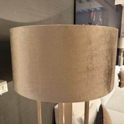 Vloerlamp ‘Sam’, gemaakt van een metalen voet in kleur ‘Quartz’ en een kap van fluwelen stof.