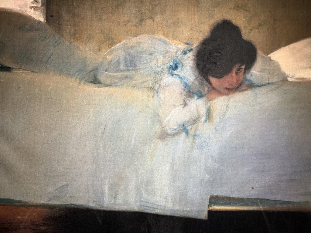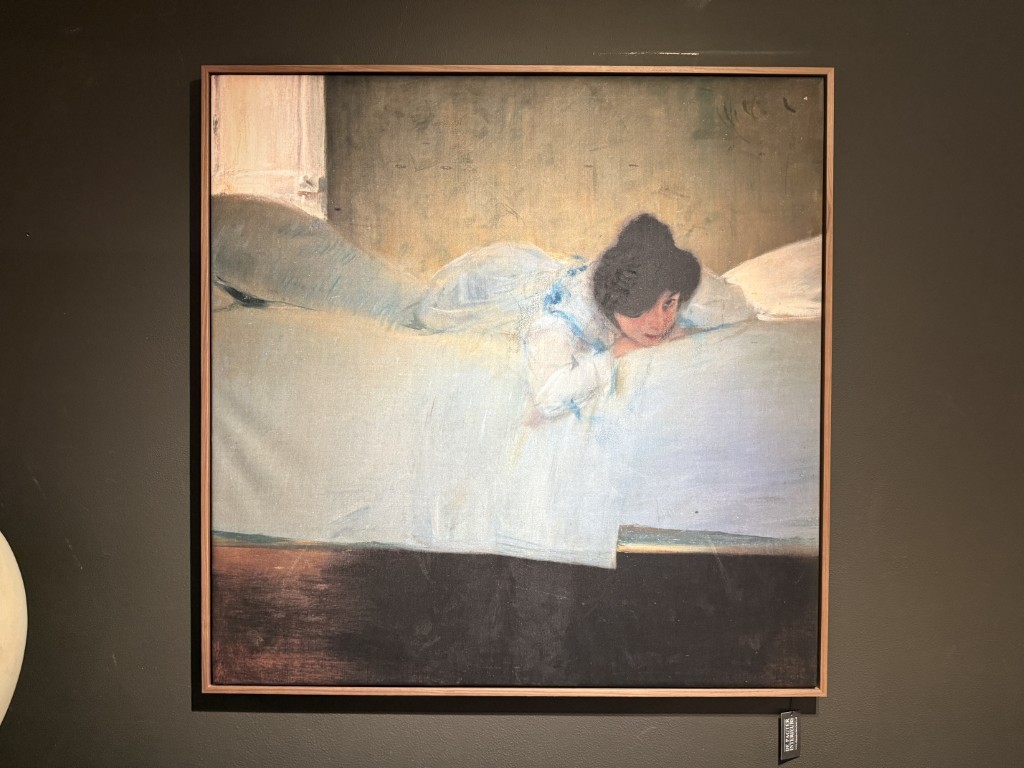 Afbeelding ‘One Moment’, gedrukt op een canvas van fluwelen stof. Het canvas zit in een houten lijst.