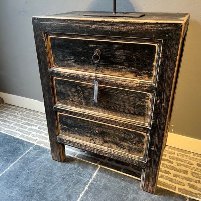Kommode ‘Odessa’, gefertigt aus schwarzem altem Kiefernholz. Auch in anderen Farben erhältlich.