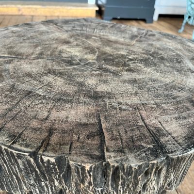 Massiver Beistelltisch ‘Indigo’ auf 3 Metallbeinen aus Hartholz.