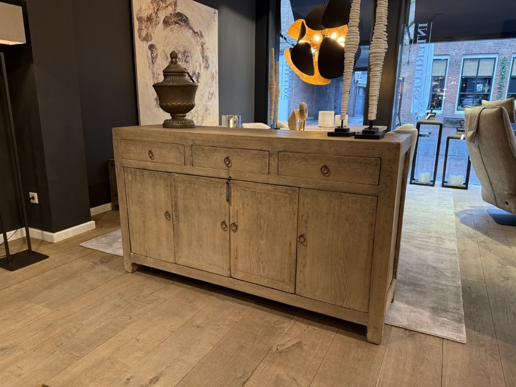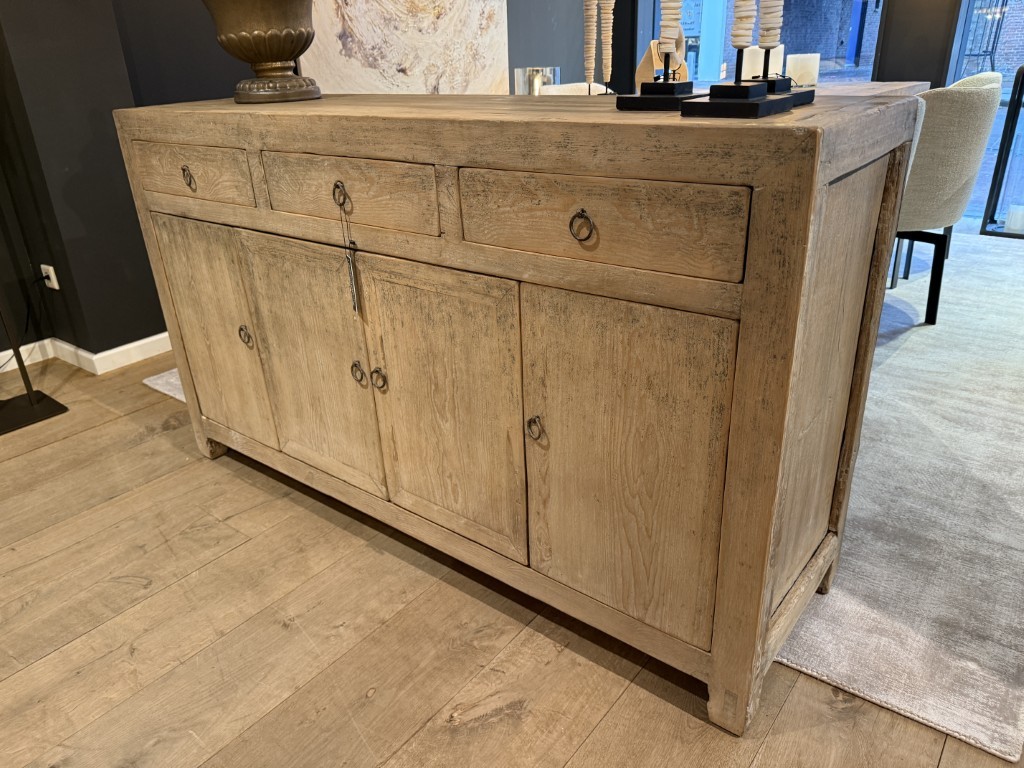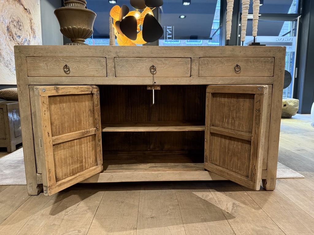 Sideboard mit 4 Türen und 3 Schubladen, gefertigt aus altem Kiefernholz.