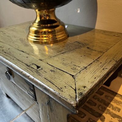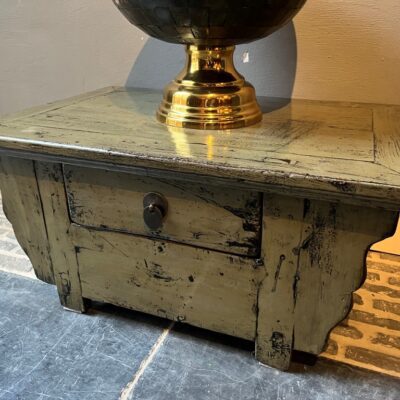 Antiker chinesischer Beistelltisch mit 1 Schublade aus altem Kiefernholz. Der Tisch ist mit grünem Lack verziert.