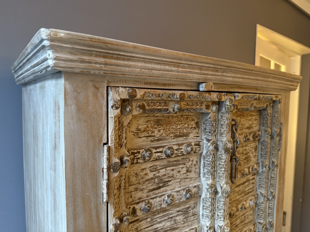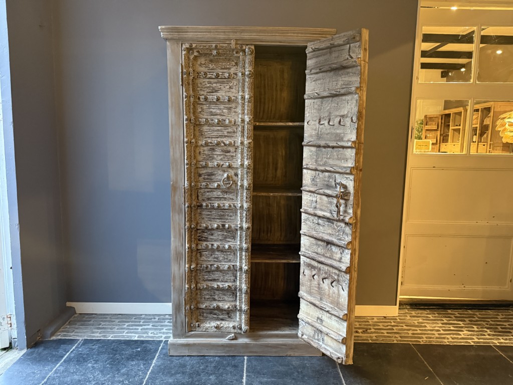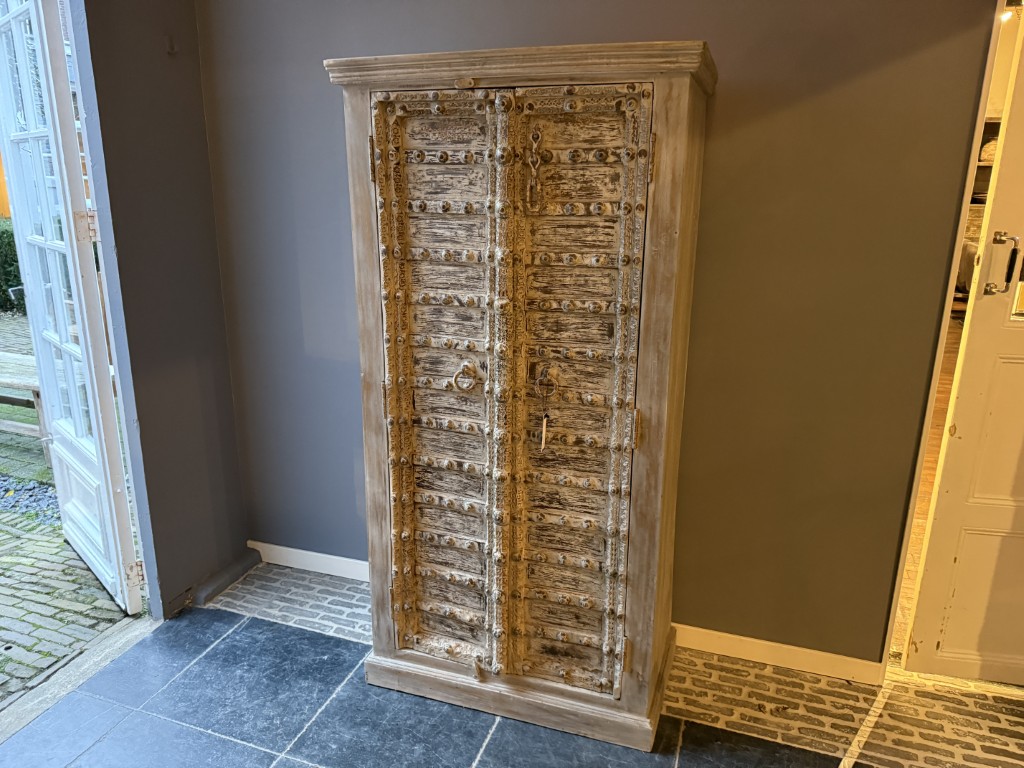 Schrank ‘Almirah’ mit 2 Türen und Schnitzerei, gefertigt aus Hartholz.