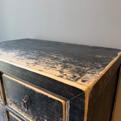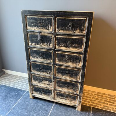 Schwarz geschliffene Kommode ‘Firenze’ mit 12 Schubladen, gefertigt aus altem Kiefernholz.