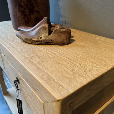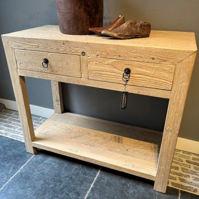 Wandtisch ‘Savona’ mit 2 Schubladen und einer unteren Ablage, aus altem Kiefernholz.